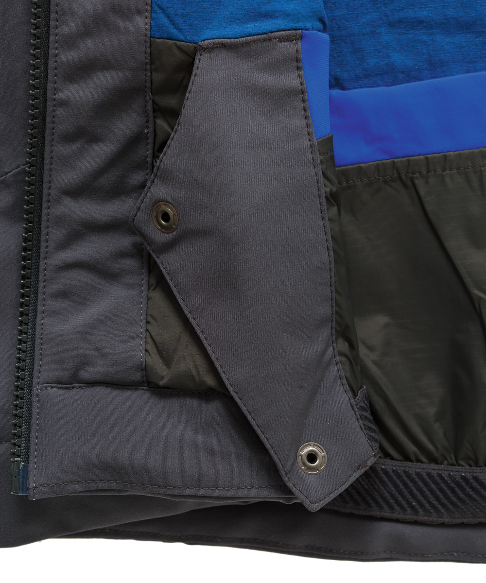 - Снегозащитная юбка и нижняя часть подкладки куртки выполнены из влагостойкого материала.